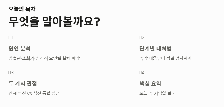 반복되는 가슴이 답답한 증세로 고통받고 있다면 다음과 같은 단계적 접근이 필요합니다.