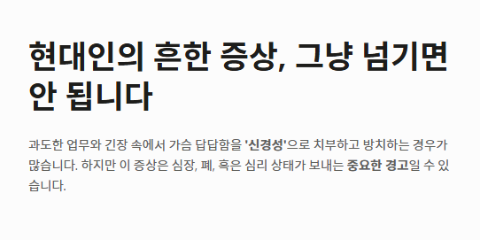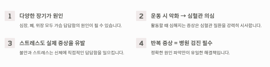 오늘 살펴본 가슴이 답답한 증세에 대한 핵심 내용은 다음과 같습니다.