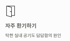 만약 소화 문제로 인한 가슴이 답답한 증세라면 과식을 피하고 식후 바로 눕지 않는 습관을 들여야 합니다. 또한 실내 공기가 탁할 때도 가슴이 답답한 증세가 생길 수 있으니 자주 환기를 시켜주세요.