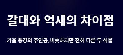 이처럼 같은 가을 식물이라도 사람들 마음속에서의 갈대와 억새의 차이점은 꽤 뚜렷합니다.