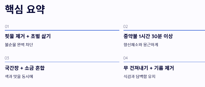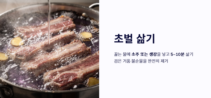 - 핏물을 충분히 빼고 초벌 삶기를 통해 불순물을 완벽히 제거하는 것이 가장 중요합니다.