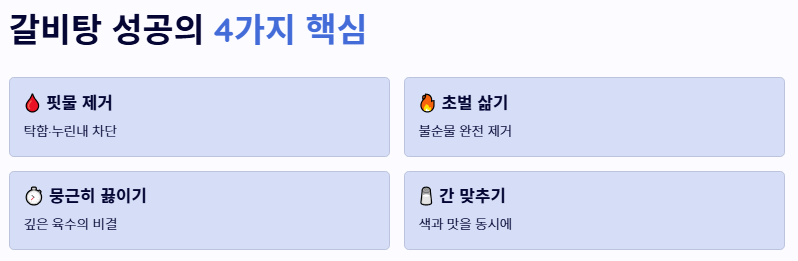오늘 배운 갈비탕 맛있게 끓이는 법의 핵심 내용을 요약합니다.