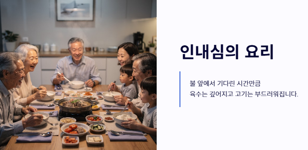 - 향신 채소와 함께 중약불에서 최소 1시간 30분 이상 뭉근하게 끓여 깊은 맛을 냅니다.