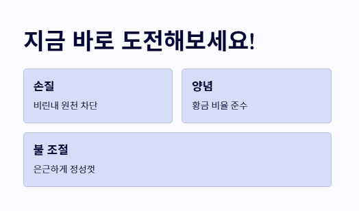 이제 황금 비율의 양념과 부재료로 요리의 완성도를 높일 차례입니다.