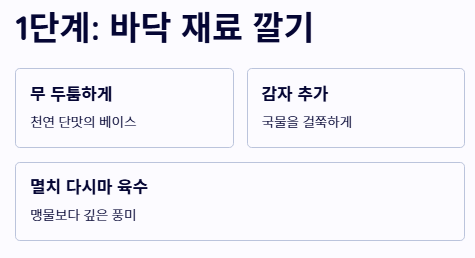 냄비 바닥에 무를 두툼하게 썰어 깔고, 감자를 섞어주면 국물이 걸쭉해져 더 맛있습니다. 멸치 다시마 육수를 사용하면 맹물보다 훨씬 깊은 풍미의 갈치조림 맛있게 하는 법이 됩니다. 무를 미리 육수에 넣고 5분 정도 먼저 익히면 간이 더 잘 뱁니다.
