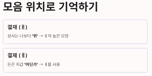 4단계: '아이(ㅐ)'와 '어이(ㅔ)'의 위치 기억하기
