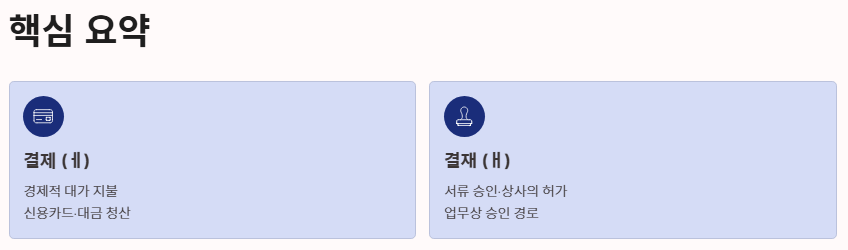 오늘 완벽하게 정리한 결제와 결재의 차이 요약본입니다.