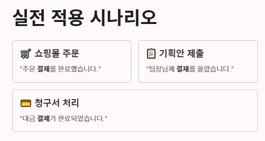 실제 문장에서 결제와 결재의 차이가 어떻게 쓰이는지 확인해 보겠습니다.