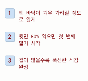 - 조금씩 부어 여러 겹으로 말아내는 인내심이 필요합니다.