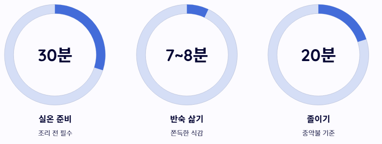 - 취향에 따라 쫀득한 졸임식이나 부드러운 침지식을 선택하여 조리합니다.