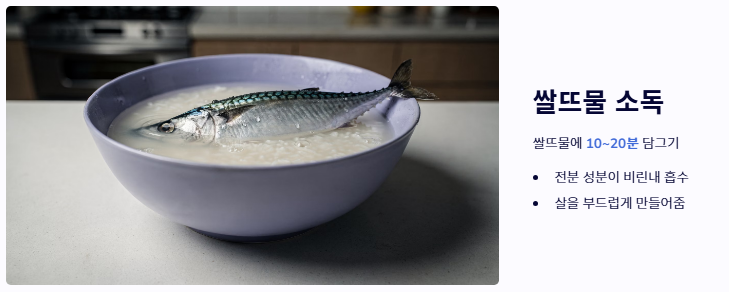 - 쌀뜨물 소독: 씻은 고등어를 쌀뜨물에 10~20분 정도 담가두세요. 쌀뜨물의 전분 성분이 비린내를 흡수하고 살을 부드럽게 만들어주는 고등어조림 맛있게 하는 방법의 필수 팁입니다.
