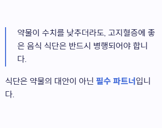 - 약물 치료가 필요한 상황에서도 고지혈증에 좋은 음식 식단은 반드시 병행되어야 합니다.
