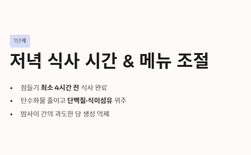 - 전날 저녁 식단과 수면의 질이 공복혈당 수치에 결정적인 영향을 미칩니다.