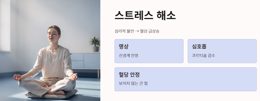 - 스트레스 해소: 심리적 불안은 혈당을 급격히 올립니다. 명상이나 심호흡은 신경계를 안정시켜 공복혈당 정상수치 관리에 보이지 않는 큰 힘이 됩니다.