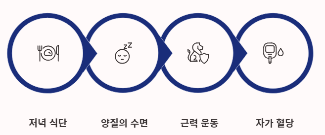 - 식후 혈당과 공복 혈당을 동시에 관리하여 당화혈색소를 적정 수준으로 유지해야 합니다.