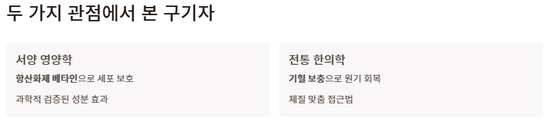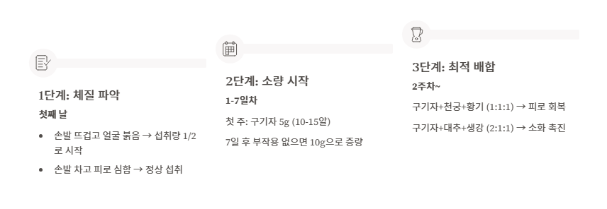 - 한의학: 기혈 보충으로 원기 회복