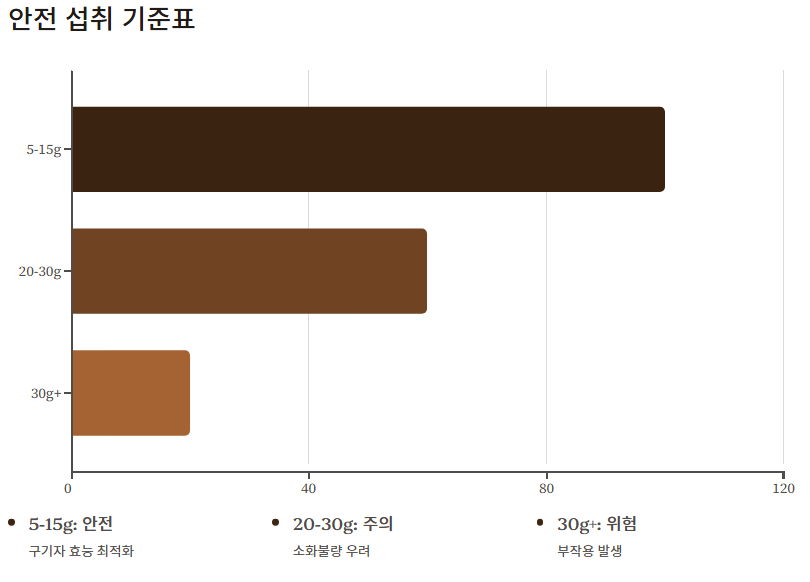| 20~30g | 주의 | 소화불량 우려 |