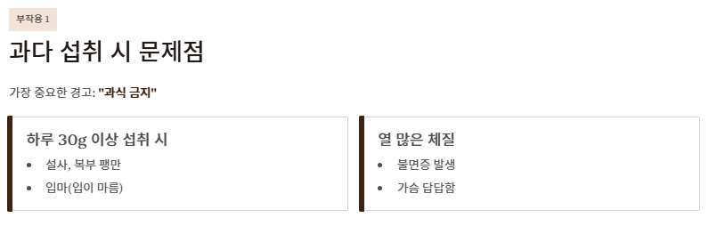 | 30g+ | 위험 | 구기자 부작용 발생 |