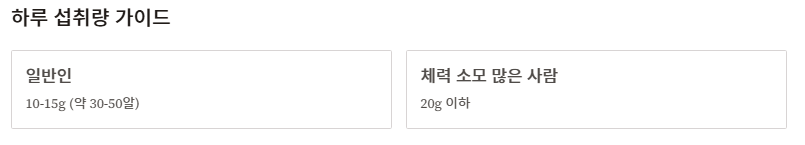 - 일반인: 10~15g (약 30~50알)