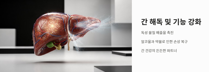 - 간 해독 및 기능 강화: 간에서 독성 물질을 배출하고 알코올이나 약물로 인한 손상을 복구하는 데 탁월한 글루타치온 효능이 있습니다.