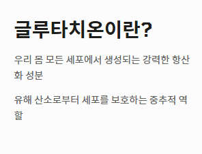 - 정의: 세포를 보호하고 해독을 돕는 '마스터 항산화제'입니다.