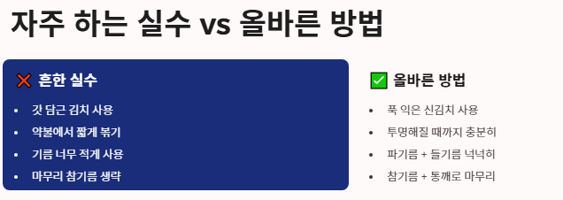 오늘 살펴본 김치볶음 맛있게 하는법의 핵심 내용을 정리합니다.