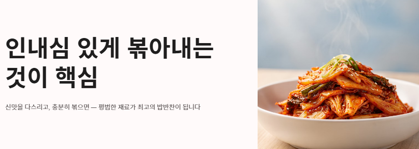 한국인의 식탁에서 김치는 빼놓을 수 없는 존재지만, 시간이 지나 너무 푹 익어버린 김치는 처치 곤란할 때가 많습니다. 그냥 먹기엔 너무 시고, 찌개만 끓여 먹기엔 지겨울 때 가장 먼저 생각나는 메뉴가 바로 김치볶음입니다. 하지만 집에서 직접 김치볶음 맛있게 하는법에 도전해 보면 생각보다 만족스러운 맛을 내기가 쉽지 않습니다. "식당에서 나오는 김치볶음은 어떻게 윤기가 자르르 흐르면서 감칠맛이 폭발할까?", "김치의 신맛은 줄이면서 아삭한 식감은 살리는 비결은 무엇일까?"라는 고민을 해보셨다면 오늘 제대로 찾아오셨습니다.