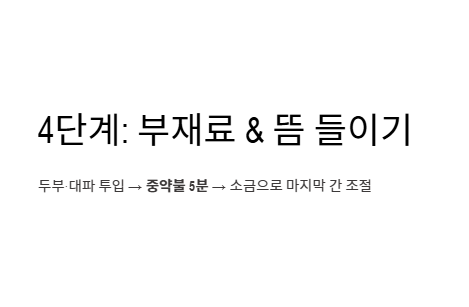 - 마지막에 대파와 고추를 넣어 깔끔한 향으로 마무리합니다.