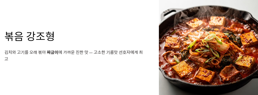 - 관점 A: '볶음 강조형' 쫀득하고 진한 스타일 김치와 고기를 기름에 아주 오랫동안 볶아 거의 '짜글이'에 가까울 정도로 진한 맛을 내는 방식입니다. 밥에 비벼 먹기 좋으며 고소한 기름맛을 선호하는 분들에게 최고의 김치찌개 맛있게 만드는 방법입니다.