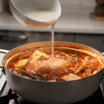 - 쌀뜨물 육수와 액젓을 활용해 국물의 깊이를 조절합니다.