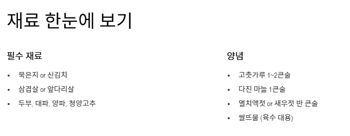 - 잘 익은 신김치와 지방이 있는 돼지고기를 준비하는 것이 기본입니다.