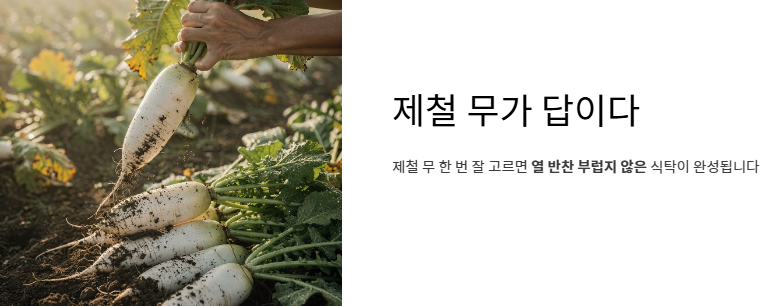 "설렁탕집에서 먹던 그 아삭하고 시원한 깍두기, 왜 내가 집에서 담그면 무가 금방 물러버리거나 양념이 따로 놀까요? 국밥 한 그릇을 뚝딱 비우게 만드는 '황금빛 탄력'의 비밀을 지금 공개합니다."