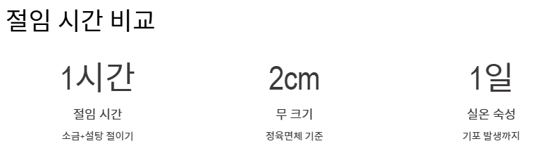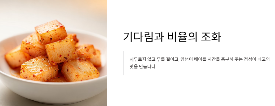 - 소금과 설탕으로 충분히 절여 무의 아삭한 식감을 살립니다.
