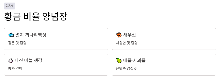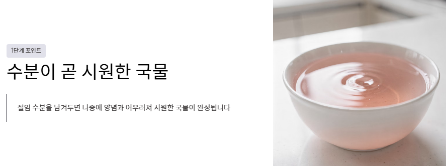 - 새우젓과 액젓의 조화로 깊은 감칠맛과 시원함을 동시에 잡습니다.