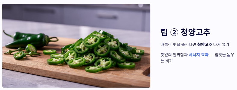 - 청양고추의 칼칼함: 매콤한 맛을 즐긴다면 청양고추를 다져 넣으세요. 깻잎의 알싸함과 시너지를 내어 입맛을 돋우는 최고의 깻잎김치 맛있게 담그는법 비기가 됩니다.