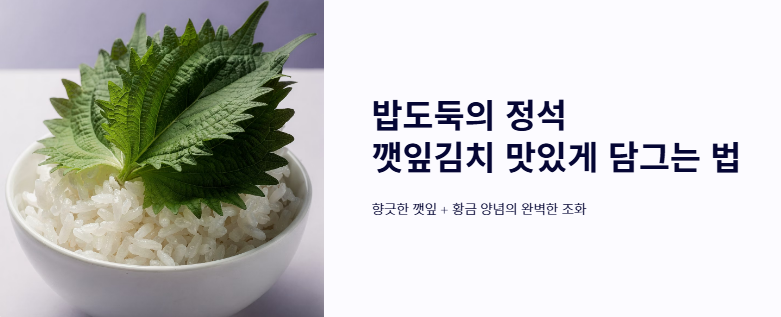 따끈한 흰쌀밥 위에 갓 담근 깻잎김치 한 장을 슥 올려 싸 먹는 그 맛은 한국인이라면 누구나 아는 '밥도둑'의 정석입니다. 특유의 알싸한 향과 짭조름한 양념의 조화는 잃어버린 입맛을 되찾아주는 최고의 밑반찬이죠. 하지만 집에서 직접 깻잎김치 맛있게 담그는법에 도전해 보면 생각보다 만족스러운 결과를 얻기 어렵습니다. "깻잎의 향을 죽이지 않으면서 양념이 쏙 배게 하는 비결은 뭘까?", "시간이 지나도 깻잎이 검게 변하지 않고 신선하게 유지되는 깻잎김치 맛있게 담그는법은 없을까?"라는 고민을 해보셨다면 오늘 제대로 찾아오셨습니다. 깻잎의 세척부터 양념장의 황금 비율, 그리고 숙성의 한 끗 차이까지 실패 없는 깻잎김치 맛있게 담그는법의 모든 노하우를 공개합니다. 이 글을 마스터하신다면 요리 초보자도 일주일이 든든한 명품 밑반찬을 완성하실 수 있습니다.