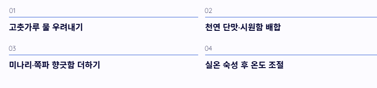 - 취향에 따라 풀국을 넣거나 맑은 물 스타일로 조절하여 나만의 맛을 찾습니다.