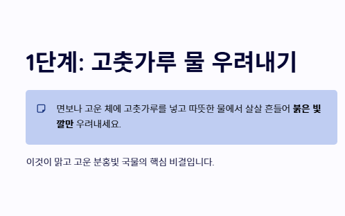 1단계: 고춧가루 물 우려내기