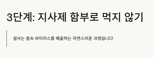 설사는 몸속의 바이러스를 배출하는 자연스러운 과정입니다. 임의로 지사제를 복용하면 오히려 바이러스 배출을 늦춰 노로 바이러스 장염 증상을 장기화할 수 있으므로 반드시 의사와 상의해야 합니다.