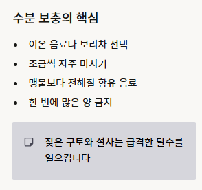 1단계: 탈수 방지가 최우선 (수분 보충)