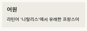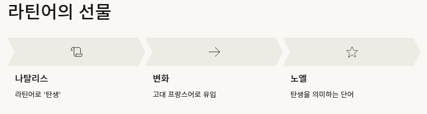 - 어원: 라틴어 '나탈리스(탄생)'에서 유래한 프랑스어입니다.