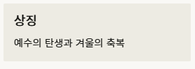 - 상징: 기독교에서는 예수의 탄생을, 일반 문화에서는 겨울의 축복과 희망을 의미합니다.