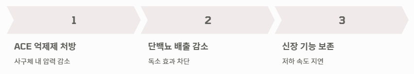 전통적인 신장내과적 관점입니다. 단백뇨 수치가 일정 수준 이상이라면 즉시 혈압약(ACE 억제제 등)을 처방하여 사구체 내 압력을 낮춰야 한다고 봅니다. 단백뇨는 그 자체로 신장을 다시 공격하는 독소가 되기 때문에, 원인과 상관없이 일단 배출량을 줄여 신장 기능 저하 속도를 늦추는 것이 최우선이라는 시각입니다.