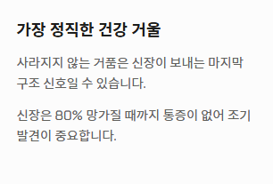 "내 소변 속 거품이 보내는 소리 없는 아우성, 신장이 무너지고 있다는 신호일까?"