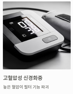 - 고혈압성 신경화증: 높은 혈압이 신장 혈관을 딱딱하게 만들어 필터 기능을 파괴합니다.