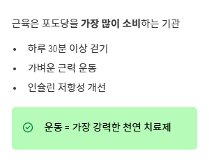 - 정제 탄수화물을 줄이는 식단 관리와 규칙적인 운동은 필수입니다.