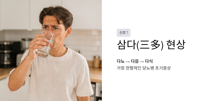 - 다뇨, 다음, 다식의 '삼다 현상'은 가장 대표적인 위험 신호입니다.
