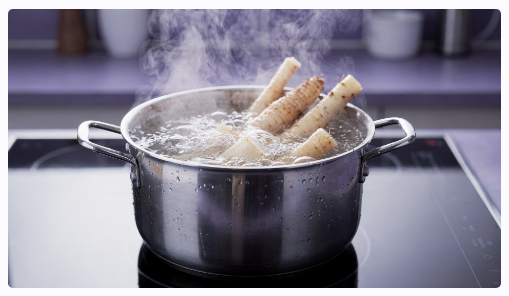 가장 추천하는 더덕 껍질 벗기는 법의 비결은 바로 '데치기'입니다. 소금을 넣은 끓는 물에 손질한 더덕을 넣고 약 10~20초간 빠르게 굴려주세요. 열이 가해지면 껍질과 알맹이 사이에 틈이 생겨 손질이 훨씬 쉬워집니다.