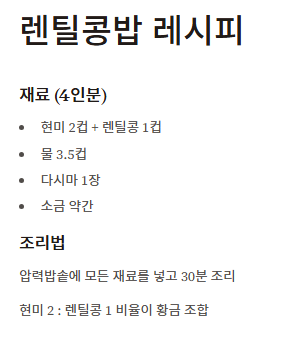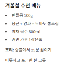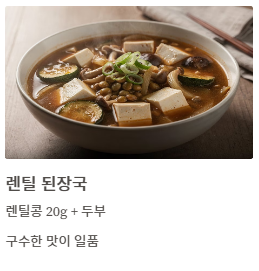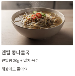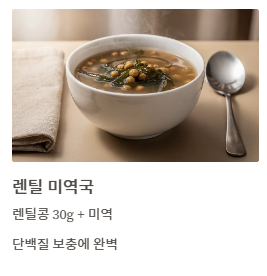- 한국식 렌틸콩밥·국 → 식사 대체