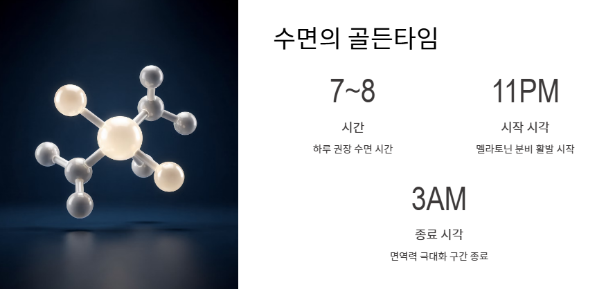 - 하루 7~8시간의 충분한 수면은 세포 재생의 골든타임입니다.